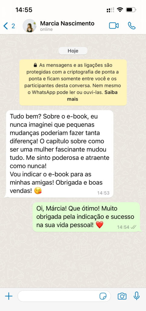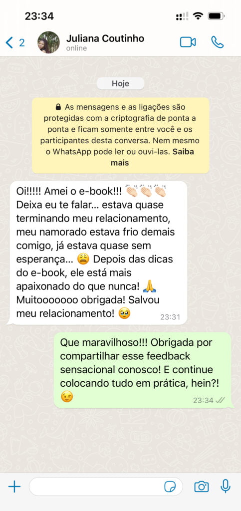 Ao aplicar as táticas de comunicação e conquista ensinadas, você vai perceber que os relacionamentos não serão mais uma fonte de ansiedade ou frustração. Você saberá exatamente o que fazer para manter o homem certo apaixonado por você, sem medo de traições ou desinteresse. Ele vai querer estar ao seu lado, sempre.